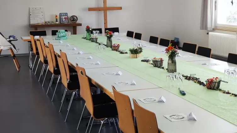 Das Gemeindehaus kann von Vereinen angemietet werden sowie von Privatpersonen z.B. für Trauerkaffees, Konfirmationen, Tauffeiern, Hochzeiten oder Geburtstagen. Die Miete beträgt pro Tag 75€.