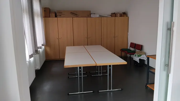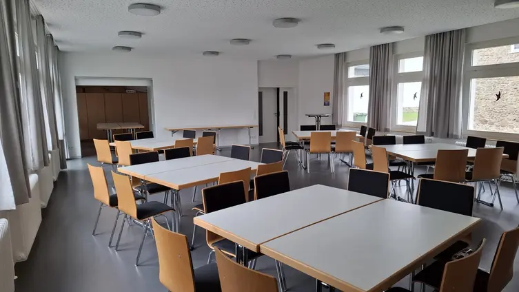 Es verfügt über einen großen Saal für bis ca. 80 Personen sowie eine Küche mit Industriespülmaschine und einen Nebenraum, der mit einer Schiebetür abgetrennt werden kann.