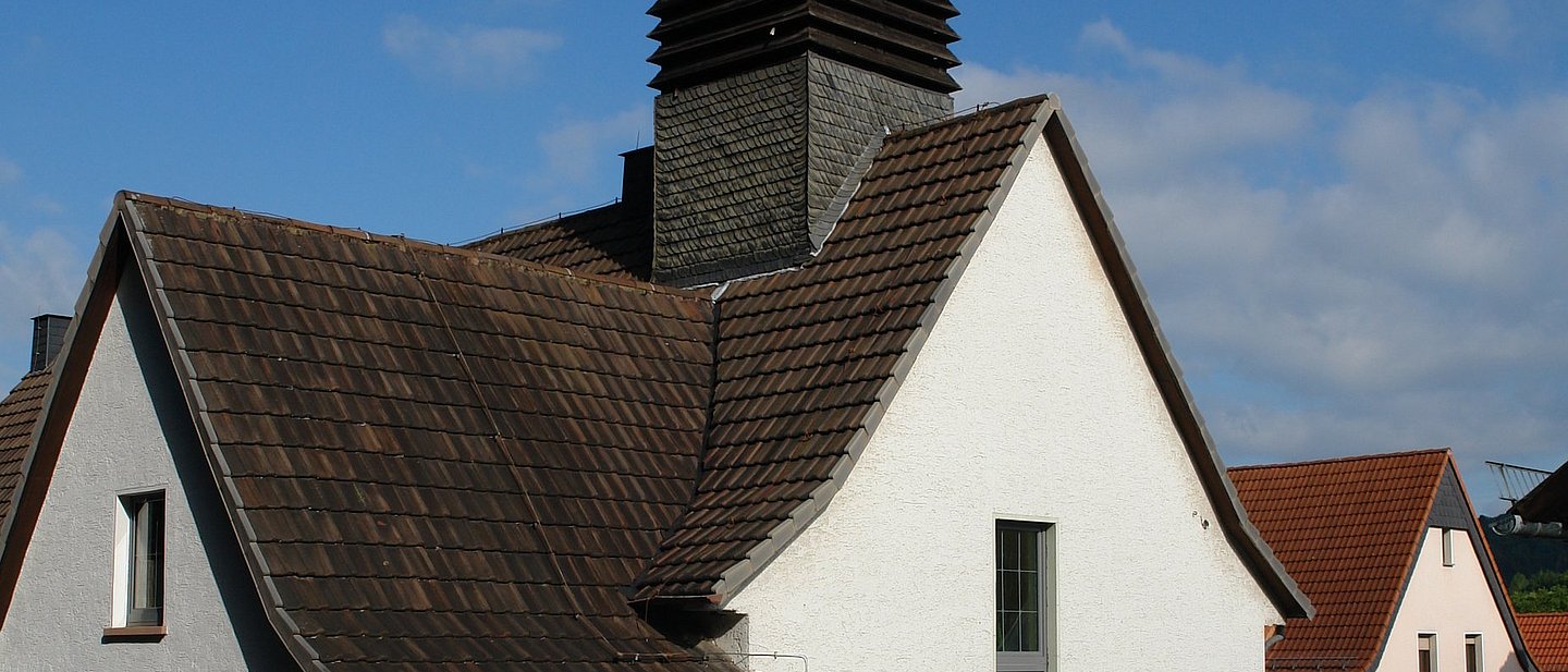 Der Wunsch der Bieberer Gemeinde nach einem eigenen Gotteshaus erfüllte sich erst nach langer Zeit. 1954 weihte die Gemeinde das "Gemeindehaus" in der Rimbergstraße ein. Im Jahr 1967 wurde dem Gemeindehaus ein Glockenturm aufgesetzt. Nach und nach baute die Gemeinde ihr Gotteshaus weiter aus. Im Jahr 1970 schaffte sie für damals 18.500 Mark eine Orgel an - eine Beschreibung des Instruments mit Fotos ist im Organ-Index zu finden
