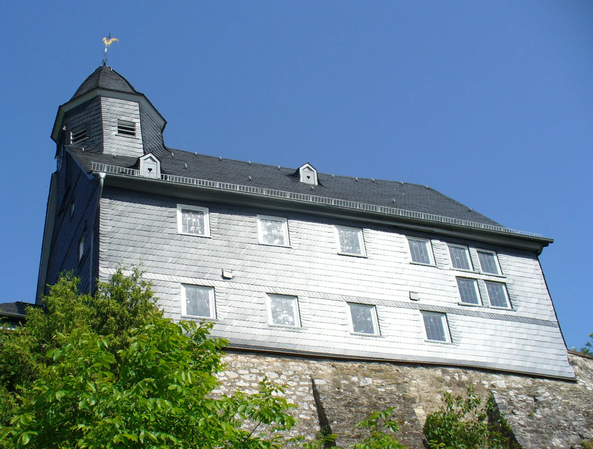 Auf dem Kirchhof sind vier Grabsteine sekundär in die Mauer der Schlossstraße südwestlich der Kirche vermauert. Drei Grabmäler aus rotem Sandstein stammen aus dem Barock und der graue Grabstein ist vom Klassizismus geprägt.
