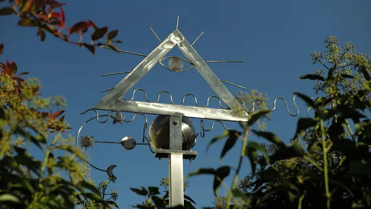 Auf der Kirchhofsmauer zur Marktstraße befindet sich ein Schöpfungsobjekt, das Elemente aus der biblischen Schöpfungserzählung darstellt.