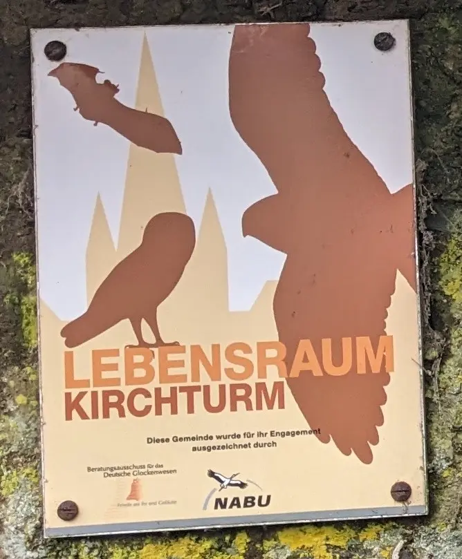Im Turm der alten Martinskirche nisten Turmfalken und Schleiereulen, die von der örtlichen Gruppe des Naturschutzbundes (Nabu) betreut werden. Am neu renovierten Pfarrhaus gibt es in luftiger Höhe Nistmöglichkeiten für Mauersegler und in der Mauer zum Bieberbach haben wir eine Brutröhre für den Eisvogel eingebaut, die auch angenommen wurde. Der Nabu hat uns dafür das Siegel "naturschutzfreundliche Gemeinde" verliehen.